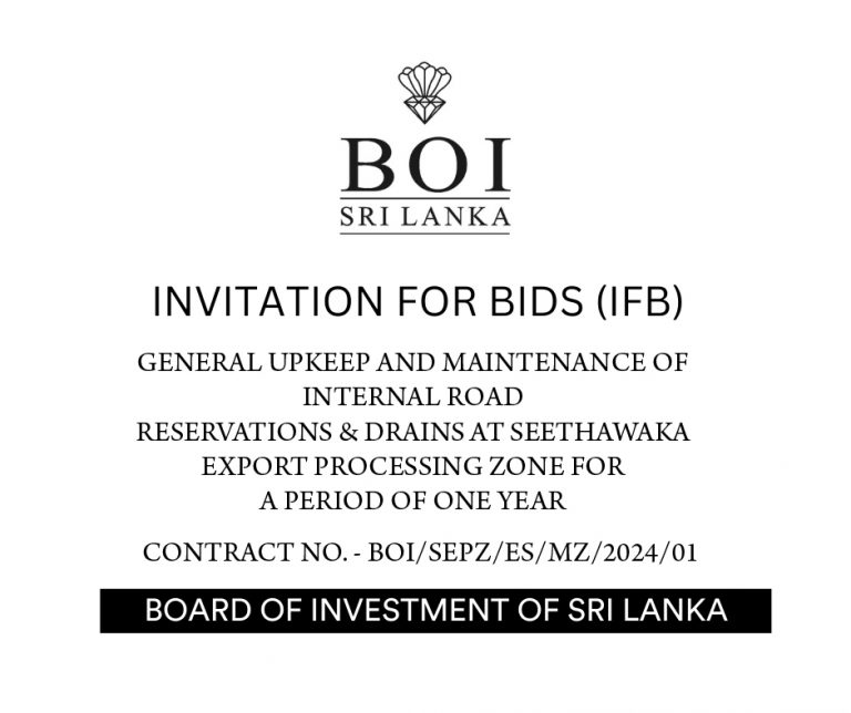 GENERAL UPKEEP AND MAINTENANCE OF INTERNAL ROAD RESERVATIONS & DRAINS AT SEETHAWAKA EXPORT PROCESSING ZONE FOR A PERIOD OF ONE YEAR More Details