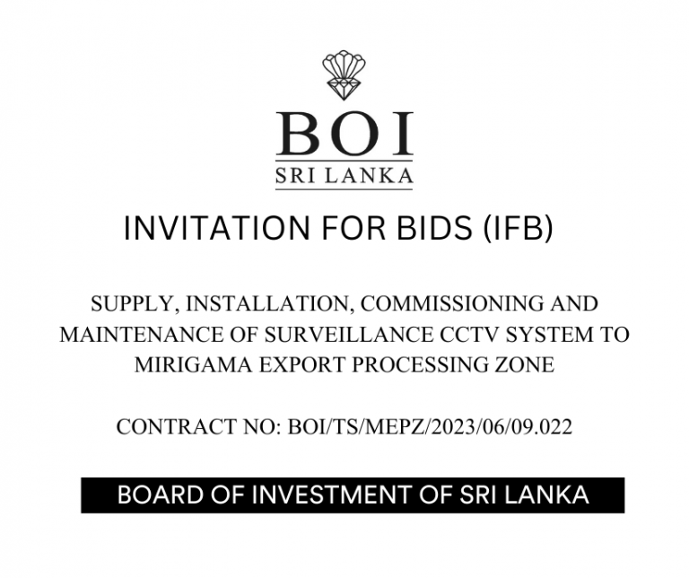 INVITATION FOR BIDS SUPPLY, INSTALLATION, COMMISSIONING AND MAINTENANCE OF SURVEILLANCE CCTV SYSTEM TO MIRIGAMA EXPORT PROCESSING ZONE CONTRACT NO: BOI/TS/MEPZ/2023/06/09.022 More Details