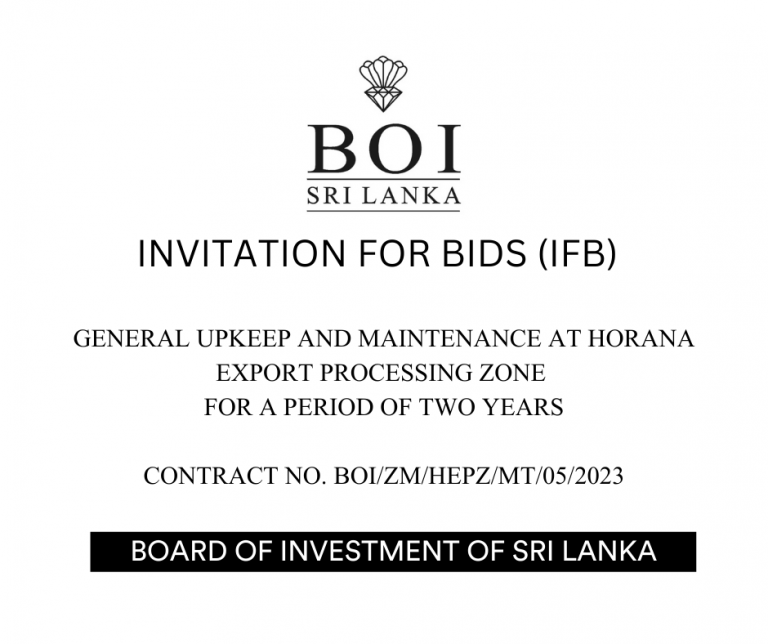 INVITATION FOR BIDS GENERAL UPKEEP AND MAINTENANCE AT HORANA EXPORT PROCESSING ZONE FOR A PERIOD OF TWO YEARS More Details