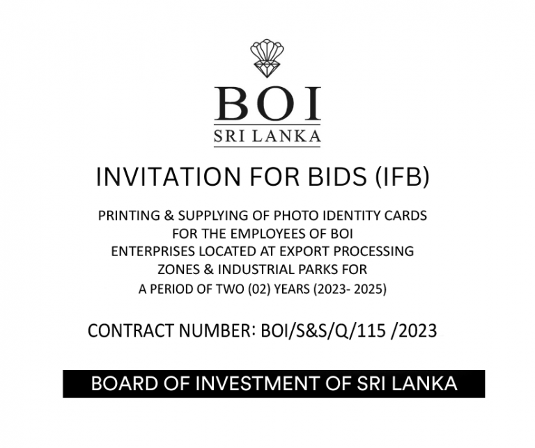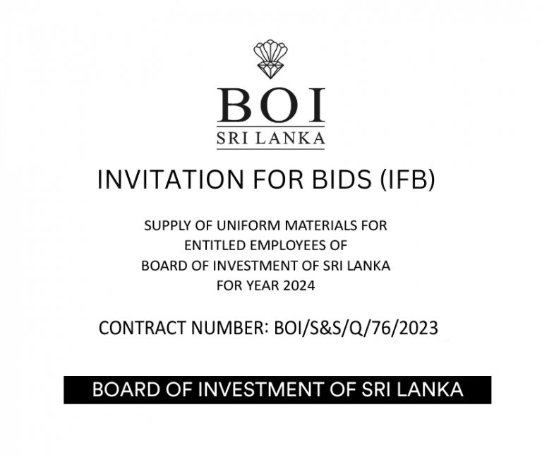 INVITATION FOR BIDS FOR SUPPLY OF UNIFORM MATERIALS FOR ENTITLED EMPLOYEES OF BOARD OF INVESTMENT OF SRI LANKA FOR YEAR 2024 More Details
